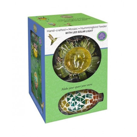 Attract beautiful hummingbirds into your garden with this eye catching Mosaic Solar Hummingbird Feeder! Feeder and attractive solar light all in one.